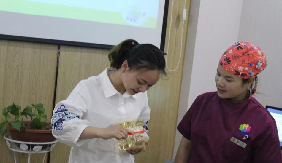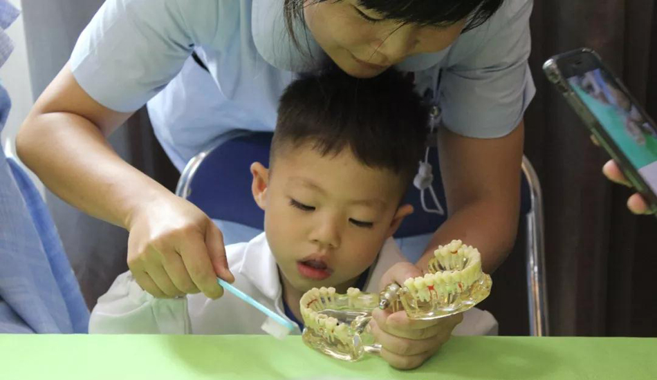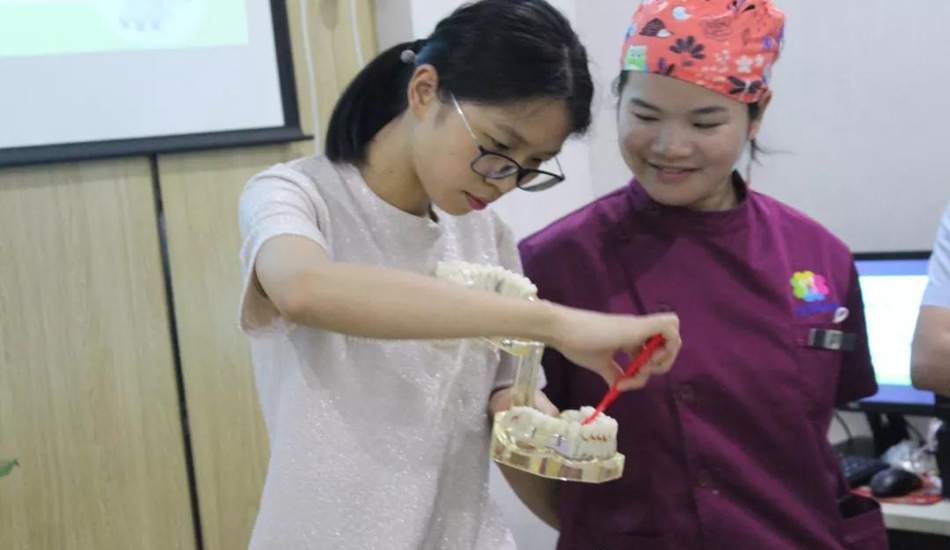 活动中,儿牙讲师范医生为大家讲解了关于宝宝的护牙保健知识,并手把手教小朋友怎样刷牙。