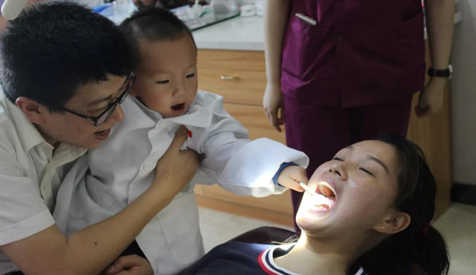 小小牙医体验环节,小朋友们穿上了小牙医工作服,开始给自己的爸爸妈妈以及其他小朋友做口腔检查。在力名齿科范医生的指导下,小朋友们的专业知识更强了,检查起来都像模像样的。在体验过程中,范医生也给小朋友的牙齿做了全面的检查。