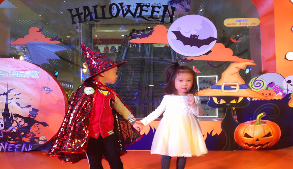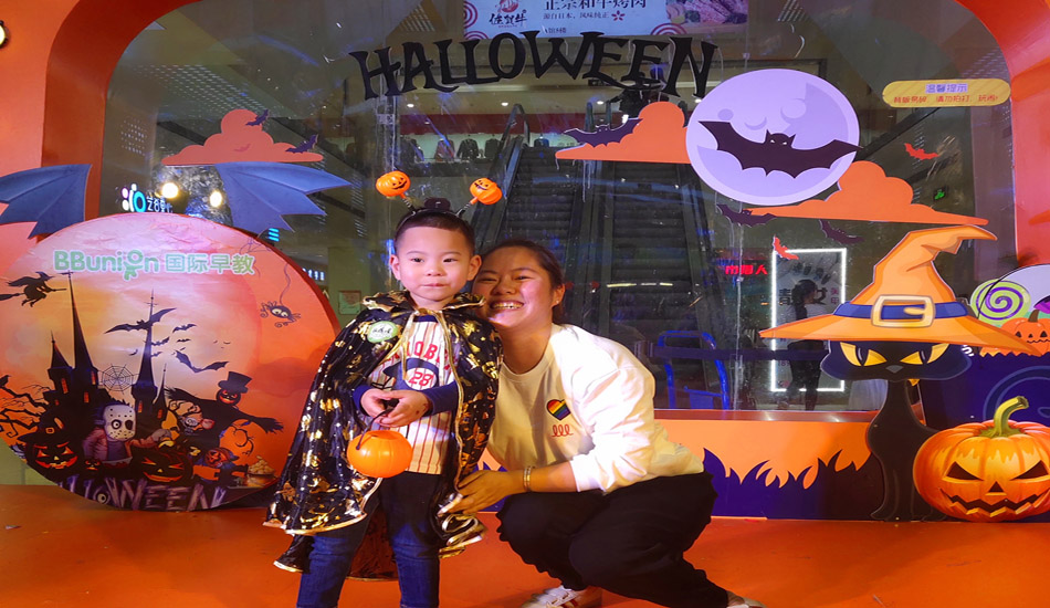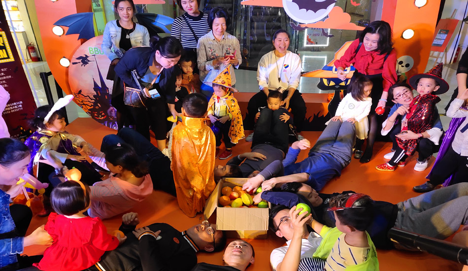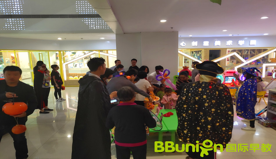走完T台,Wendy老师和诗诗老师一起给大家发了讨糖袋,下面就要开始我们的征程啦!Ken带着宝宝们,摇摇晃晃,上下穿行,从一楼到五楼,用自己的声音征服世贸。“不给糖就捣蛋”,但是给了糖要记得说“谢谢”,做个有礼貌的好宝宝。最后回到我们中心,找阿姨要糖糖,再玩一会心爱的玩具。