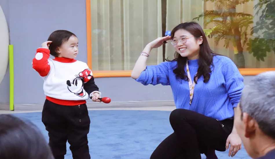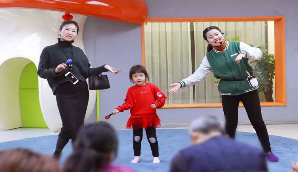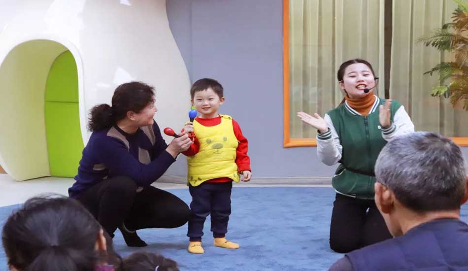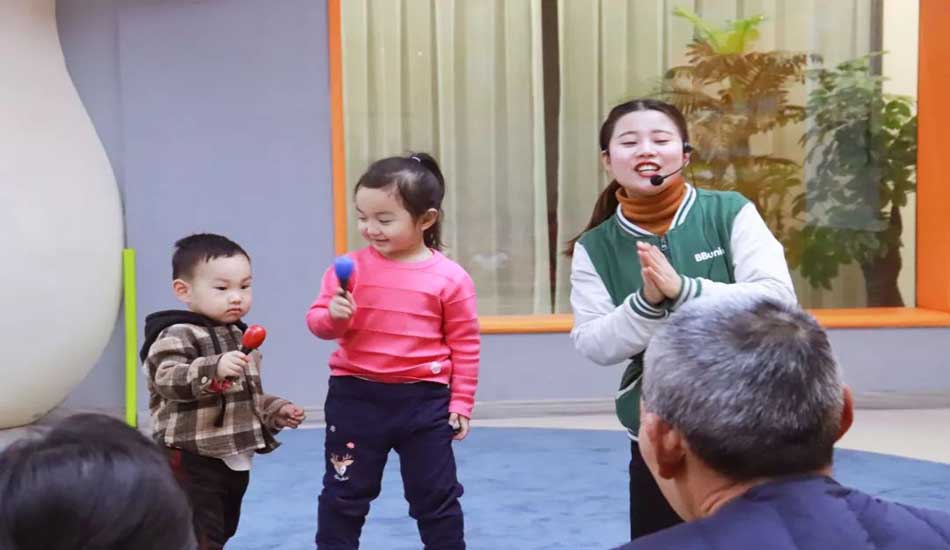 猜出来歌名的宝宝们和家长一起为大家演唱这首歌曲,拿起小沙锤打节奏。