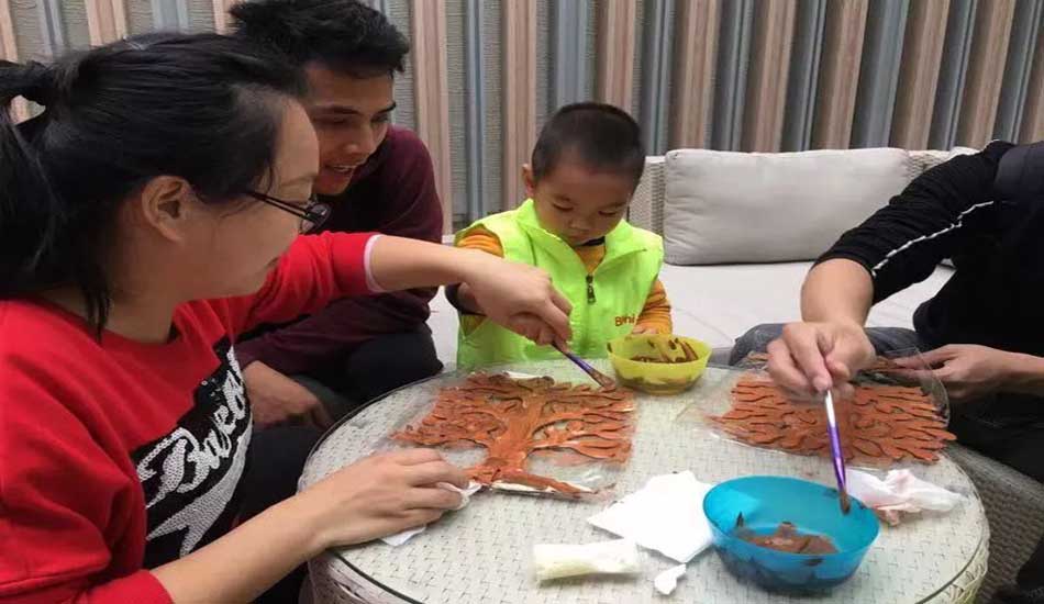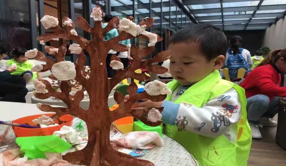 伴随着车上快乐的游戏时光,我们终于到达了碧桂园云顶,在短暂的参观之后。家长与宝宝们一起做了DIY小树,我们一起来看看他们的四季之树作品吧!