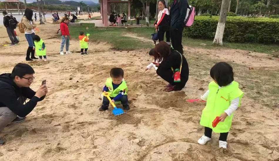 经过一上午的室内活动,吃饱饱后,我们一起出发去挂绿湖沙滩玩耍~Lucy老师带着大家一起做了123木头人的游戏,刚开始,小朋友们还未从车上的睡意中苏醒过来。玩了两三把后,每一个小朋友都玩出了兴致,开心的停不下来~